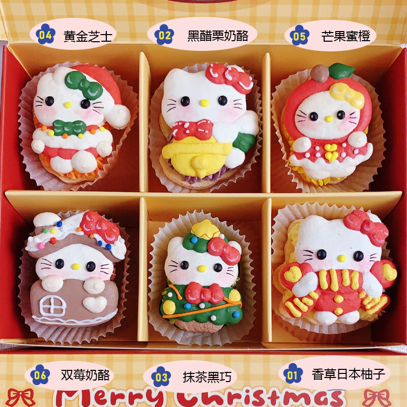 净西新年节马卡龙hellokitty星星人迷你甜品甜点蛋糕进口夹心饼干礼盒 新年卡通kitty马卡龙6枚