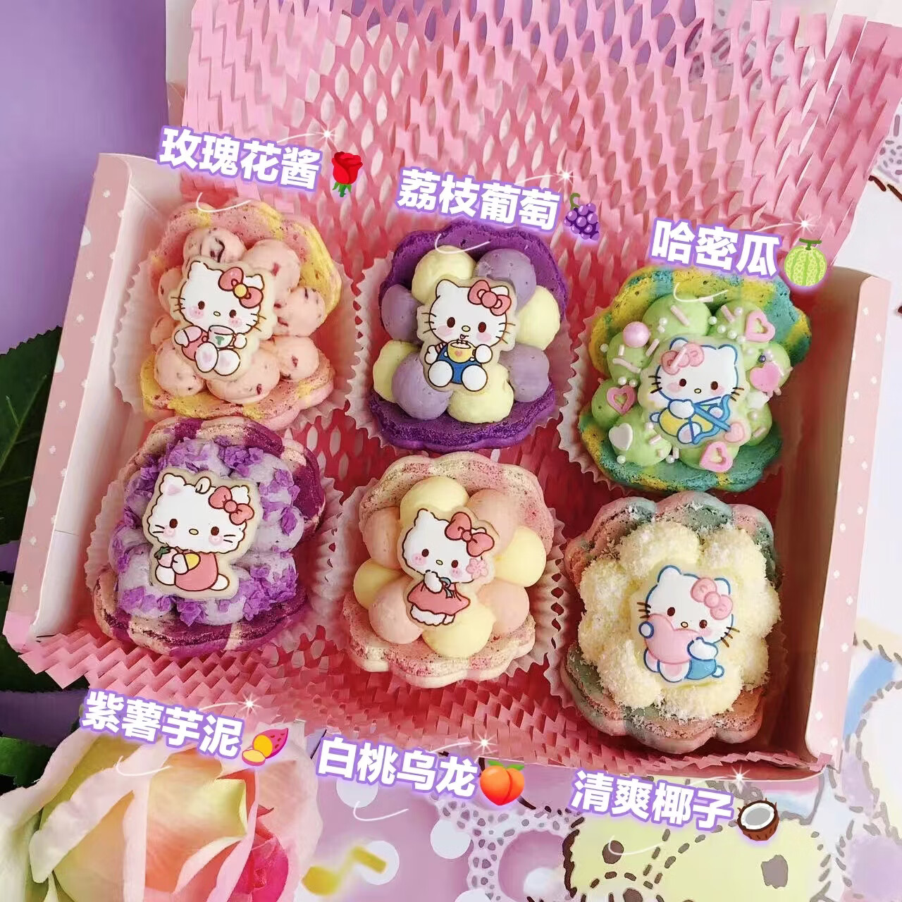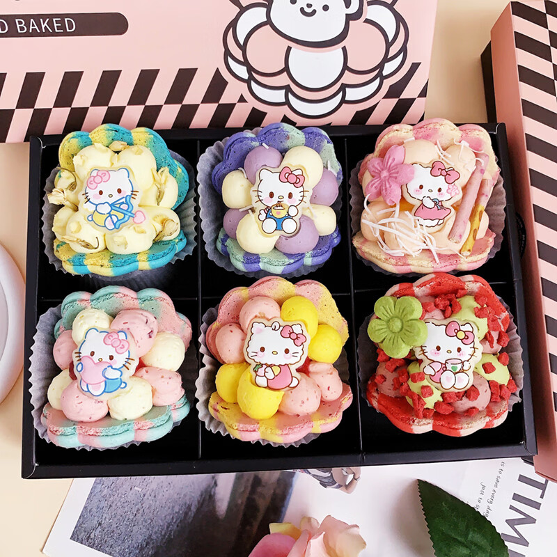 净西韩式三丽鸥贝壳胖胖花花马卡龙甜品法式甜点新年蛋糕饼干礼物礼盒 新高配HelloKitty马卡龙6枚360g