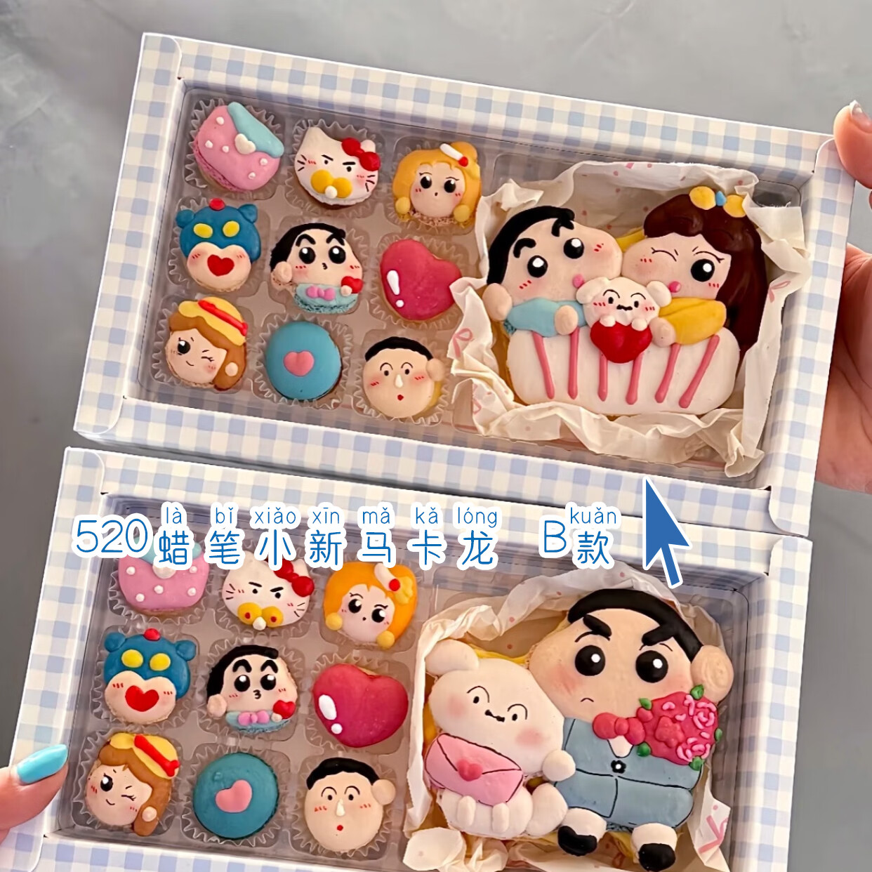 净西韩式三丽鸥贝壳胖胖花花马卡龙甜品法式甜点新年蛋糕饼干礼物礼盒 新高配蜡笔小新y马卡龙6枚360g
