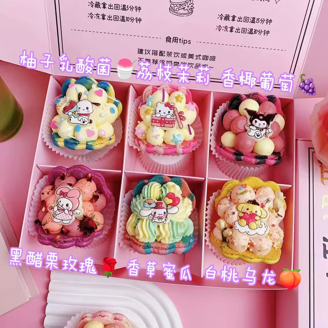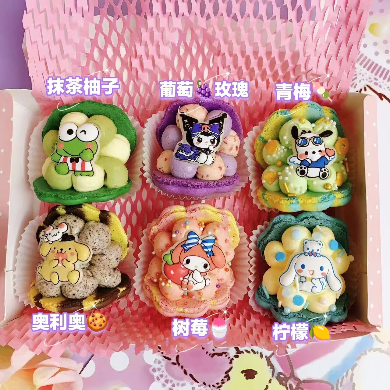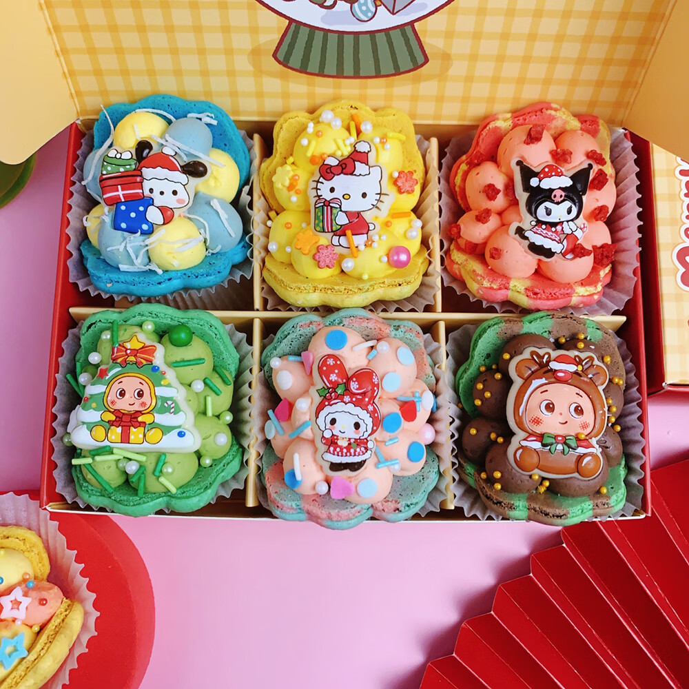 净西韩式三丽鸥贝壳胖胖花花马卡龙甜品法式甜点新年蛋糕饼干礼物礼盒 新年款高配6枚三丽鸥马卡龙
