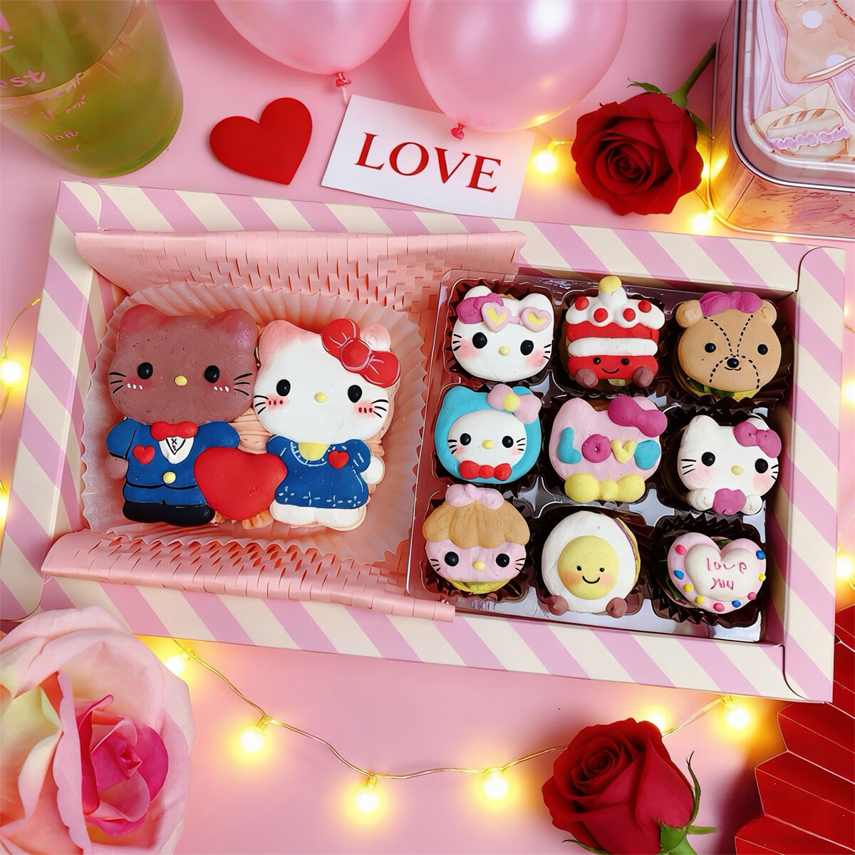 净西新年节马卡龙hellokitty星星人迷你甜品甜点蛋糕进口夹心饼干礼盒 情人节HelloKitty卡通组合马卡龙
