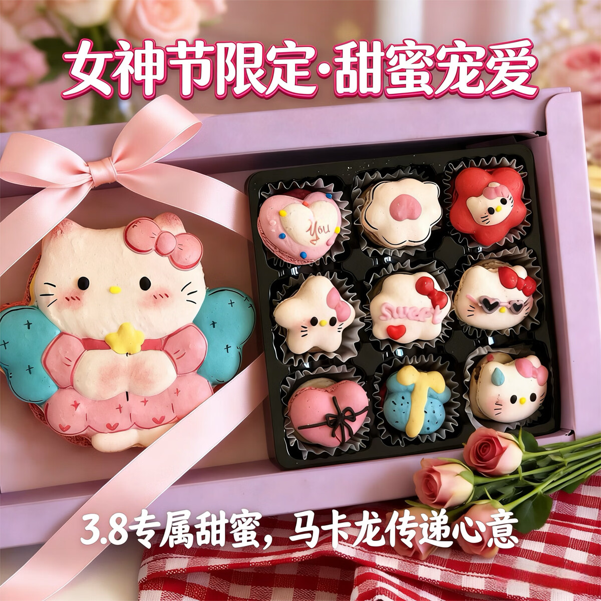 净西韩式三丽鸥贝壳胖胖花花马卡龙甜品法式甜点新年蛋糕饼干礼物礼盒 女神节hello Kitty混合迷你马卡龙A款