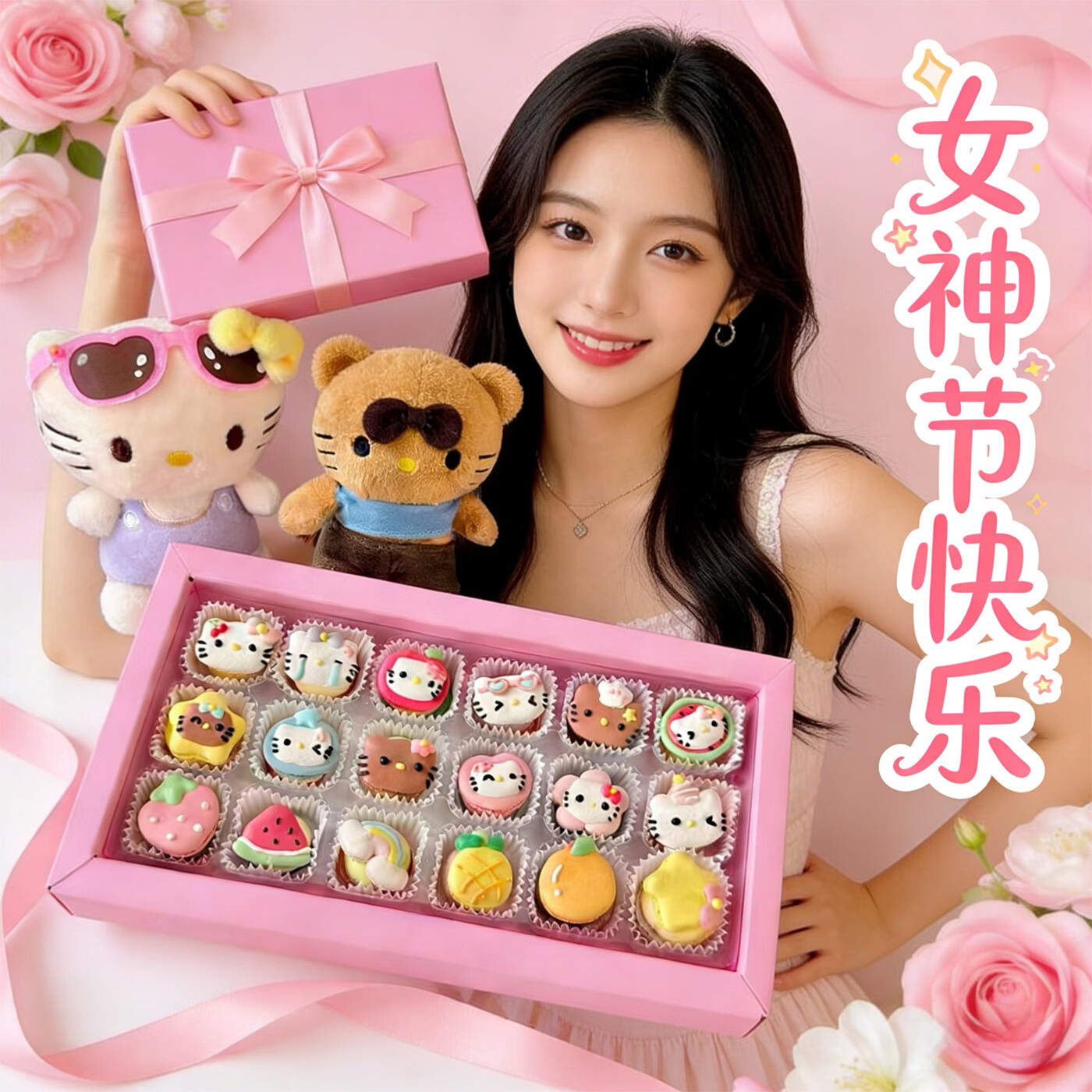 净西韩式三丽鸥贝壳胖胖花花马卡龙甜品法式甜点新年蛋糕饼干礼物礼盒 女神节helloKitty迷你18枚马卡龙B款