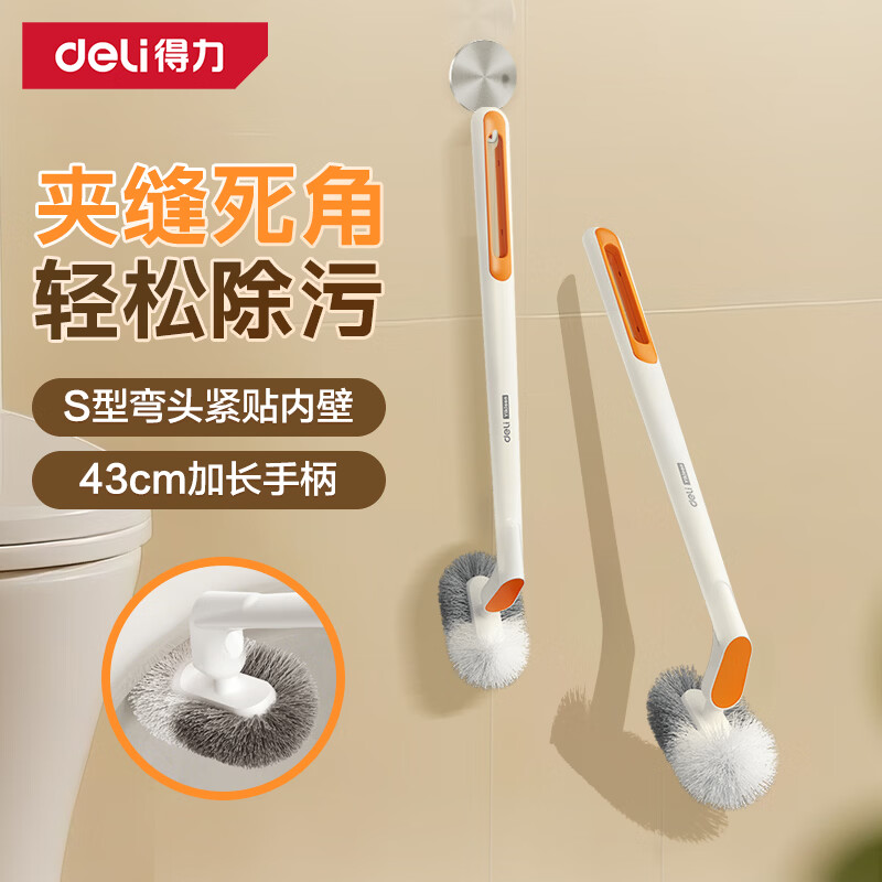 得力(deli)S型弯头马桶刷 无死角卫生间清洁壁挂式免打孔凹槽洗刷洁厕神器