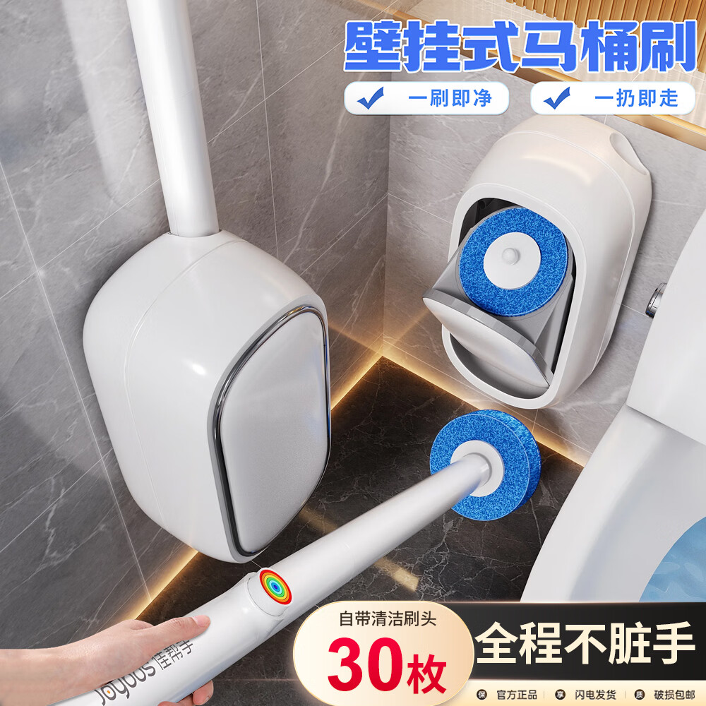 佳帮手一次性马桶刷套装无死角清洁壁挂长柄卫生间替换头刷子带30枚刷头