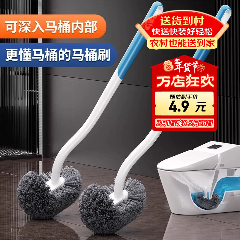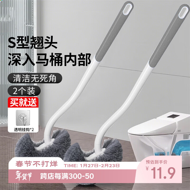 洁比世马桶刷子2个装卫生间清洁刷S型弯头壁挂加长手柄无死角洗厕所神器