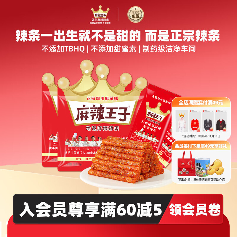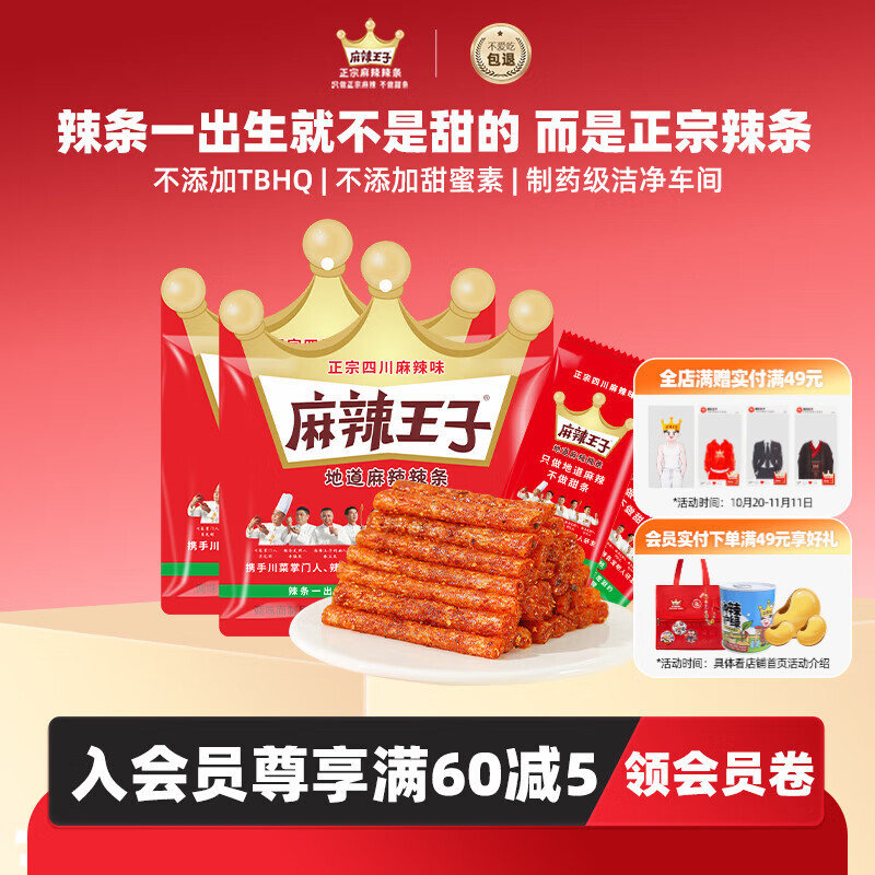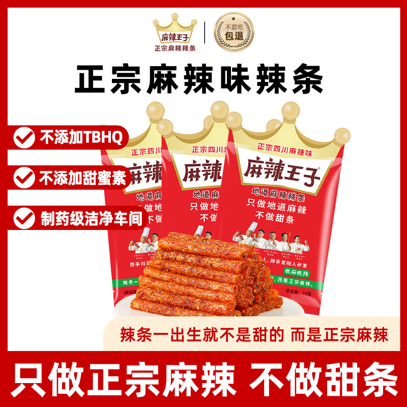 麻辣王子正宗辣条很麻很辣36g*3包 休闲零食湖南特产怀旧儿时小吃