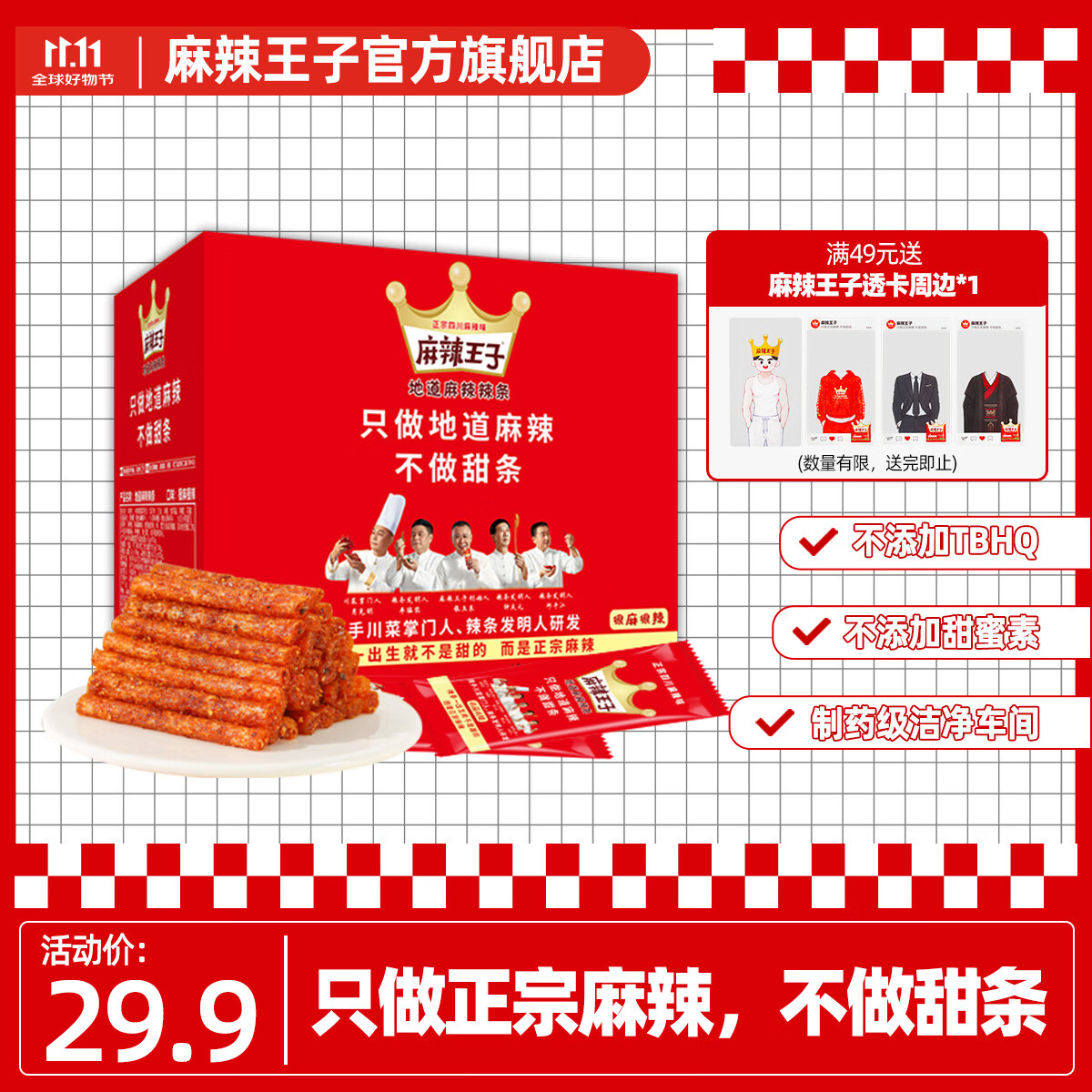 麻辣王子正宗辣条独立小包休闲零食大礼包湖南特产解馋辣味零食 很麻很辣1盒-550g(30小包)