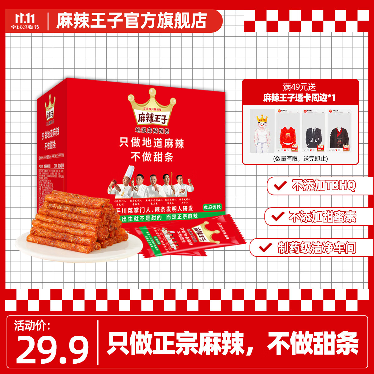 麻辣王子辣条很麻很辣110g 正宗麻辣味 休闲娱乐闲暇时光追剧小零食