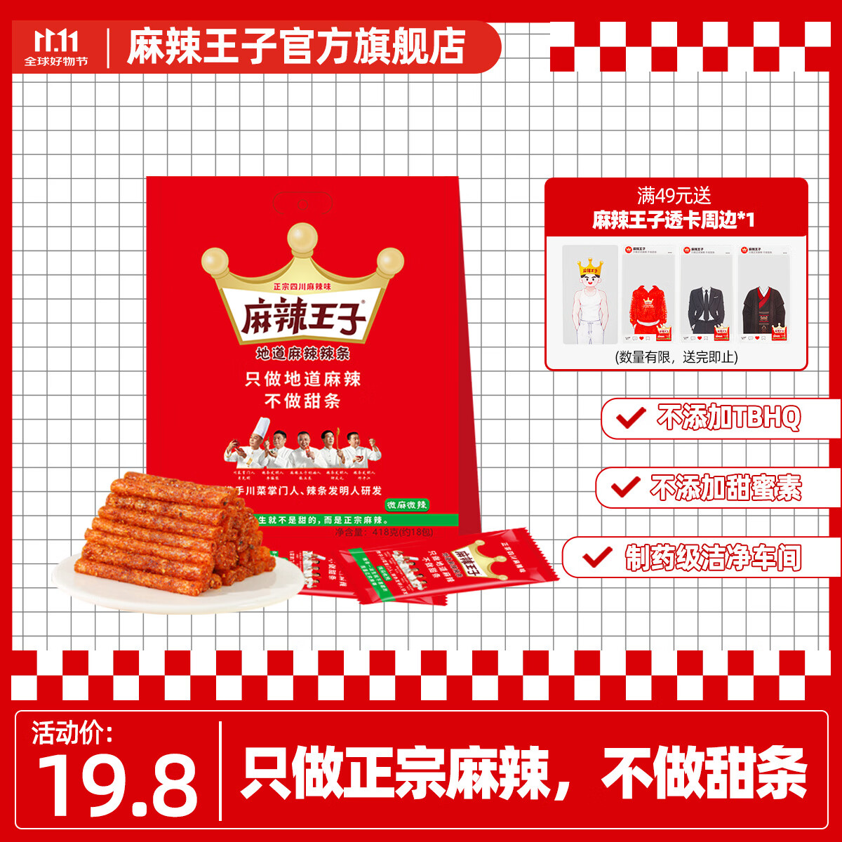 麻辣王子正宗辣条微麻微辣418g休闲零食大礼包独立小包装聚会郊游网红小吃