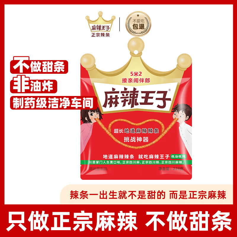 麻辣王子正宗辣条微麻微辣160g休闲零食聚会郊游解馋小吃分享办公室下午茶