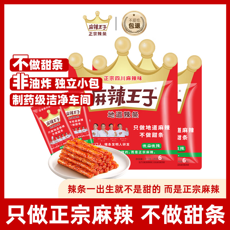 麻辣王子辣条微麻微辣110g 正宗麻辣味 休闲零食宵夜解馋办公室网红麻辣