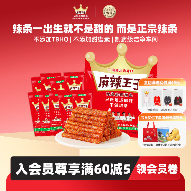 麻辣王子辣条很麻很辣418g 正宗麻辣味休闲零食大礼包办公室下午茶出游