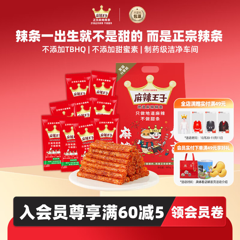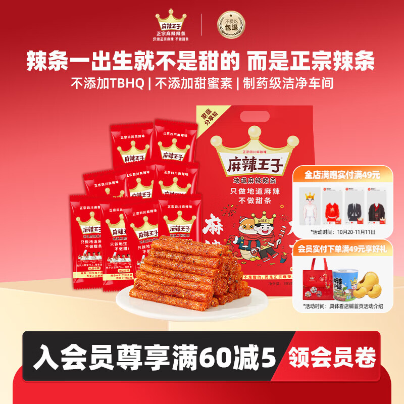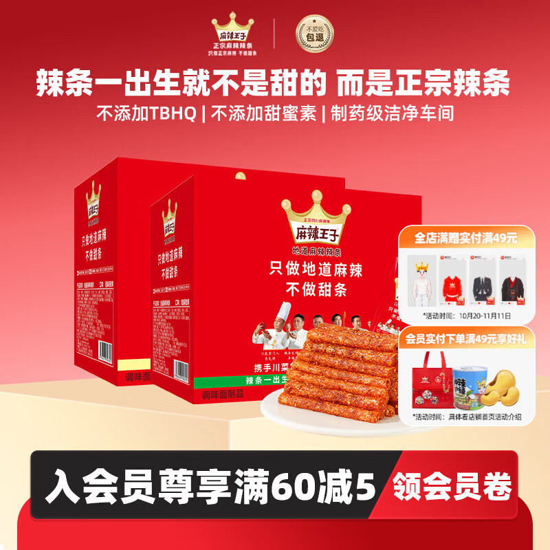 麻辣王子正宗辣条独立小包休闲零食大礼包湖南特产解馋辣味零食 很麻很辣2盒-550g*2(60小包)