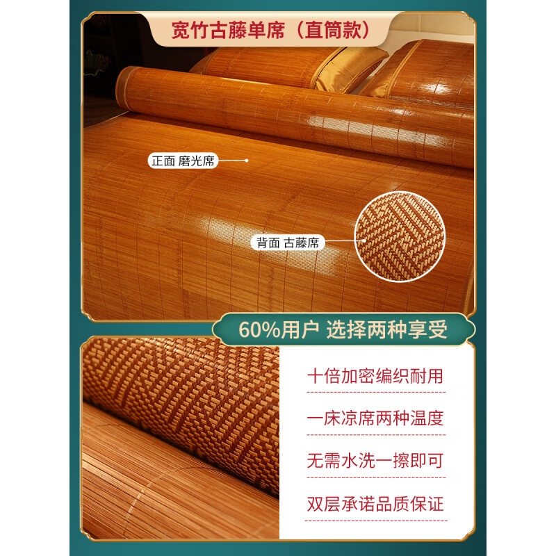 黄古林高端竹席凉席夏天2025新款席子可折叠双人竹子藤席双面夏季 乌竹古藤席丨直筒款丨单件席 180cmx200cm