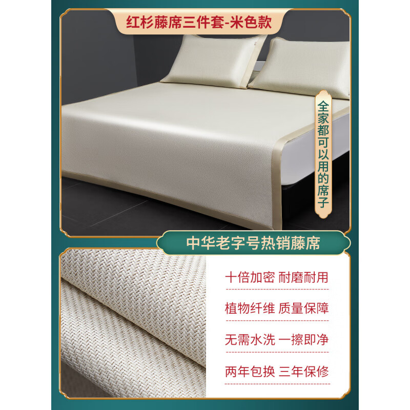 黄古林2025新款高端可折叠藤席家用天然软凉席A类 红杉藤席-米色 凉席+2只枕套 150cm*200cm
