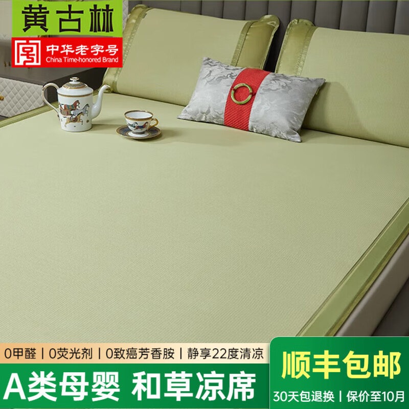 黄古林凉席2025新款草席免水洗A类夏季高档双人婴儿可用席子单人宿舍席 和草单席/直筒款天然绿 0.9米床(90*192cm)