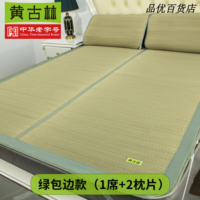 黄古林凉席天然海绵草席双人学生宿舍蔺草席子夏季老式家用可折叠 绿包边款【天然草80%吸水率】 三件套 200cm*180cm
