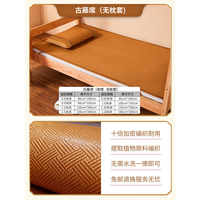 黄古林凉席夏季2025新款a类母婴古藤席天然冰丝双面床笠儿 【古藤席】床席款|无枕套|单面使 1.5m(5英尺)床