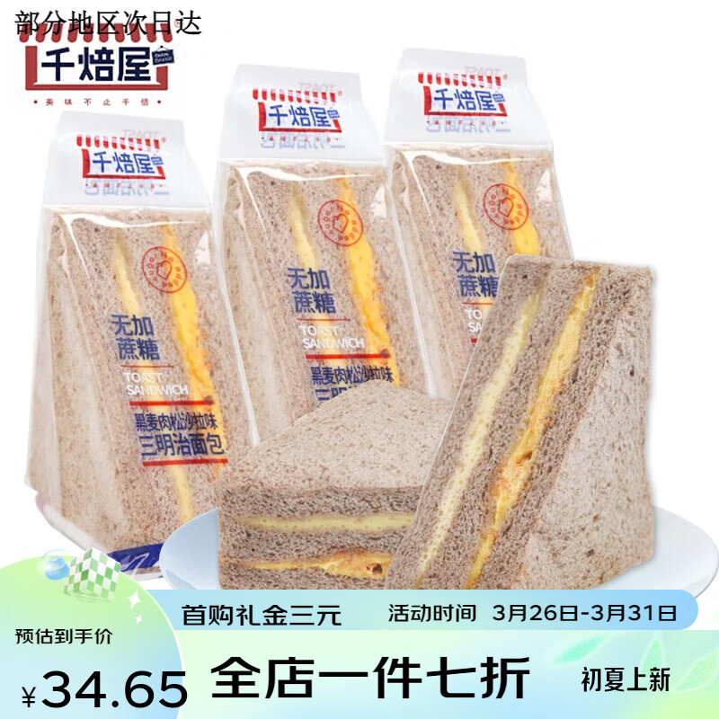 千焙屋面包无蔗糖黑麦肉松沙拉三明治夹心吐司营养早餐整箱 无蔗糖黑麦6包【约】 500g