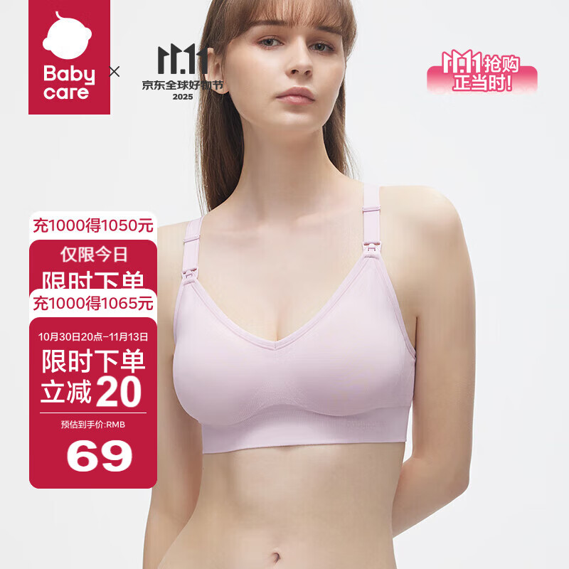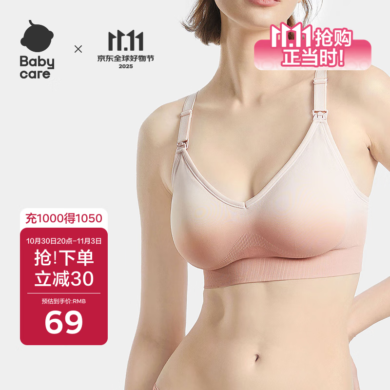 babycare哺乳文胸孕妇内衣胸罩聚拢有型无钢圈透气产后喂奶 白桃冰淇淋M码