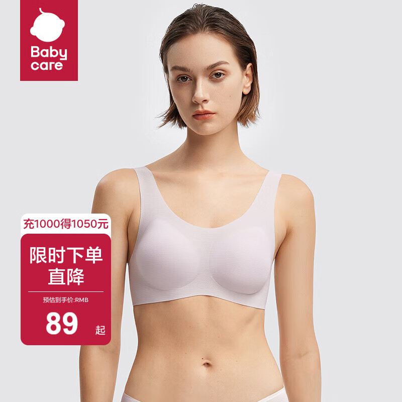 babycare山茶花哺乳文胸孕妇哺乳内衣聚拢防下垂收副乳怀孕期专用 轻盈粉 XXL