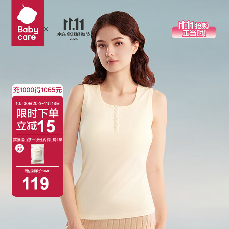 babycare山茶花哺乳背心产后免穿文胸喂奶外出遮挡孕妇纯棉吊带 燕麦白 L