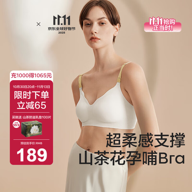 bc babycare山茶花哺乳文胸孕妇哺乳内衣聚拢防下垂收副乳怀孕期专用 白金色 XL