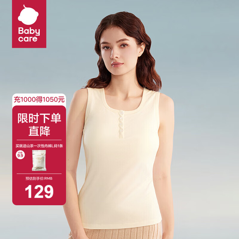 babycare山茶花哺乳背心产后免穿文胸喂奶外出遮挡孕妇纯棉吊带 燕麦白 M