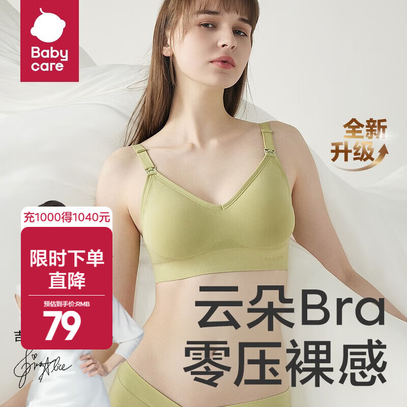babycare哺乳文胸聚拢孕妇内衣胸罩薄款产后喂奶文胸罩 普利亚橄榄【新升级】 M