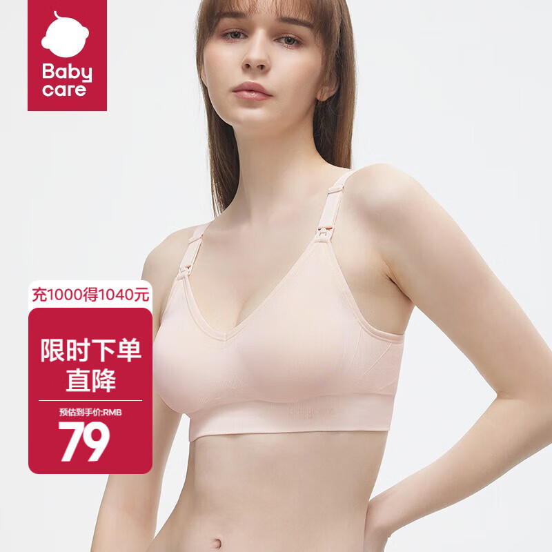 babycare哺乳文胸聚拢孕妇内衣胸罩薄款产后喂奶文胸罩 粉肤色【新升级】 L