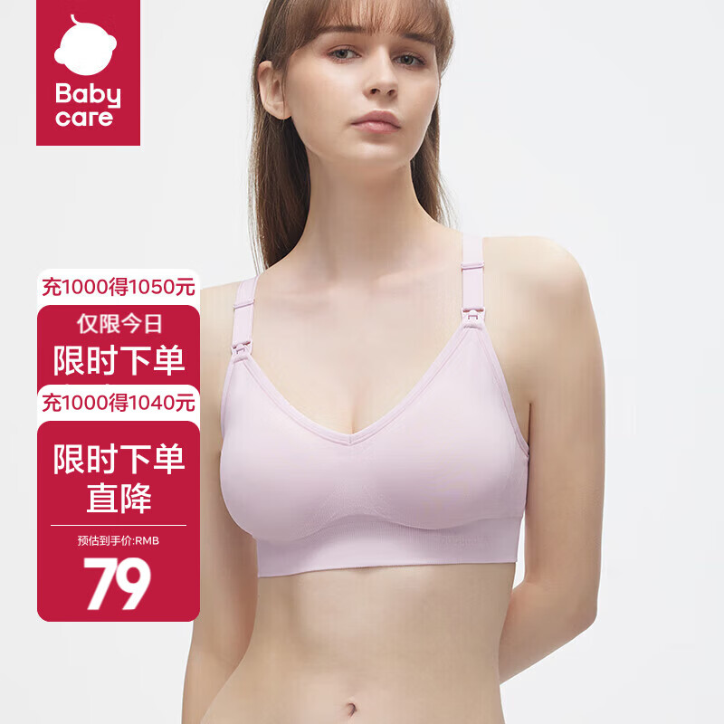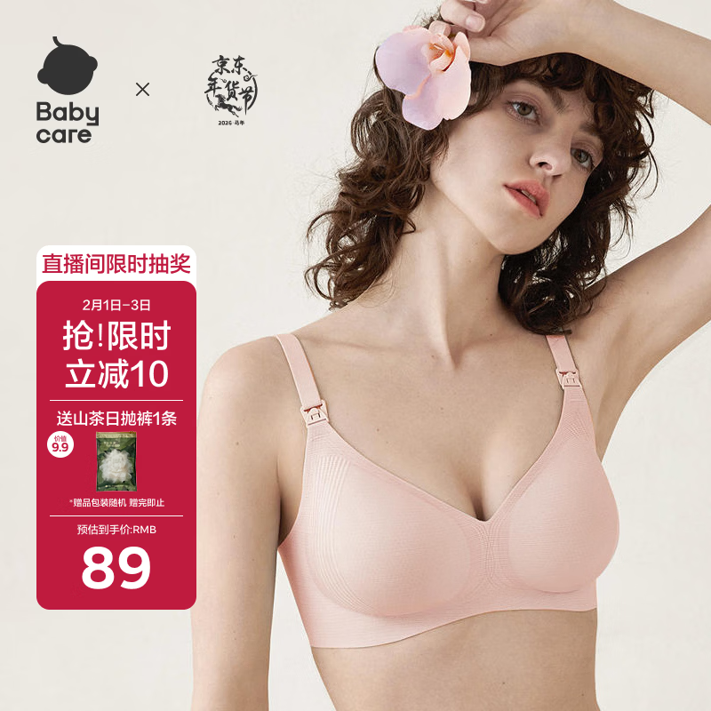 babycare山茶花哺乳文胸孕妇哺乳内衣聚拢防下垂收副乳怀孕期专用轻盈粉 L