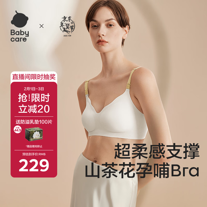 babycare山茶花哺乳文胸孕妇哺乳内衣聚拢防下垂收副乳怀孕期专用白金色XL