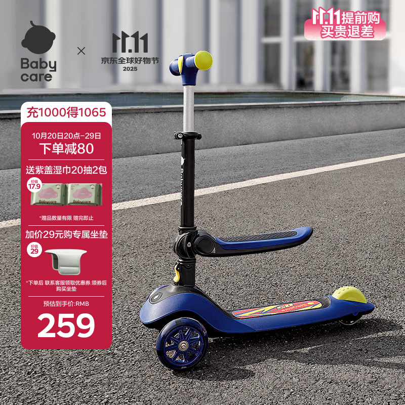 babycare儿童滑板车2-3-6岁轻便可折叠滑车男女童可坐可骑溜溜车-奥里安蓝
