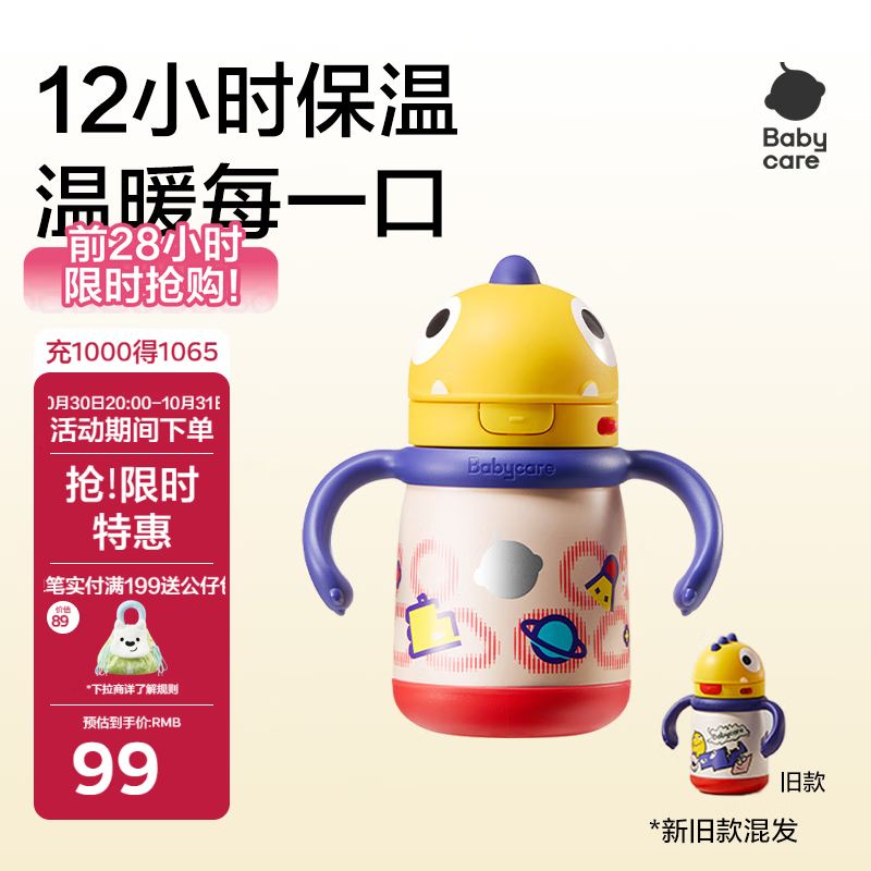 babycare儿童保温杯婴儿宝宝吸管水杯霸王龙不锈钢保温杯300ml-新旧款混发