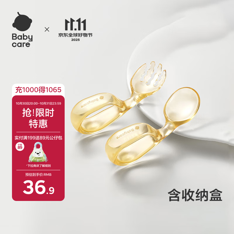 babycare儿童吃饭训练勺PPSU餐具套装 宝宝吃饭专用自主进食叉勺 环形短柄