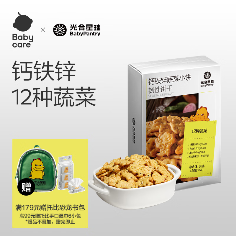 光合星球babycare儿童零食光合星球饼干高钙铁锌蔬菜小饼酥脆饼干80g