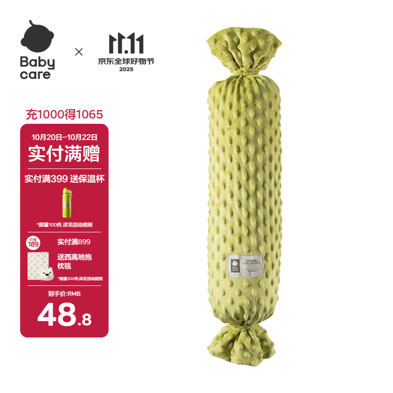babycare婴儿糖果安抚枕宝宝多功能哄睡抱枕侧睡靠背档枕 绿茶椰果12*40CM