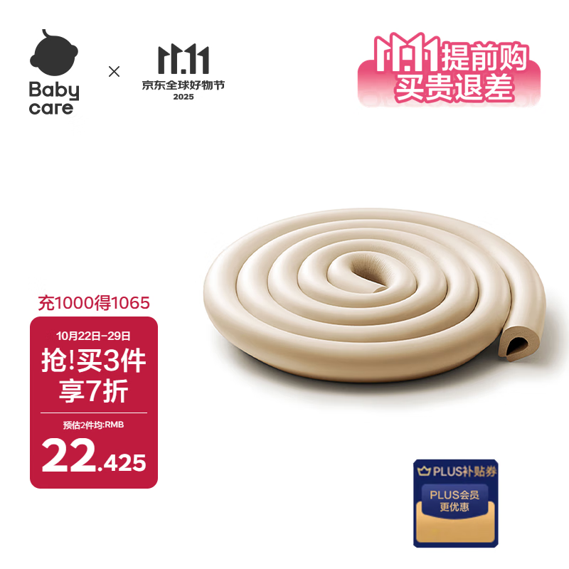 babycare防撞条宝宝安全墙角门防护条婴儿加厚加宽儿童 白垩色-U形2米