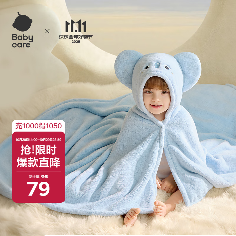 babycare婴儿浴巾暖绒洗澡巾带帽斗篷光暖黑科技发热款-埃及考拉105*105cm