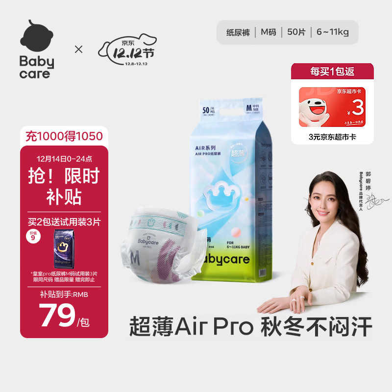 babycare Airpro纸尿裤中号M50片(6-11kg) 婴儿尿不湿夏日超薄透气