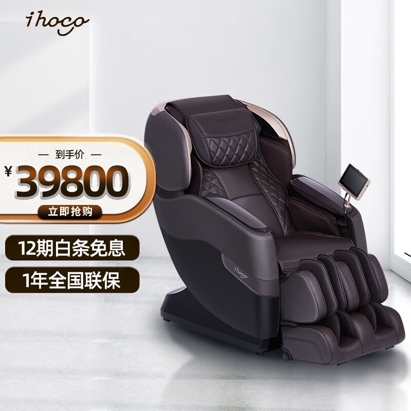 ihoco 轻松伴侣家用按摩椅零重力全自动多功能电动按摩沙发椅IH-8848 巧克力棕