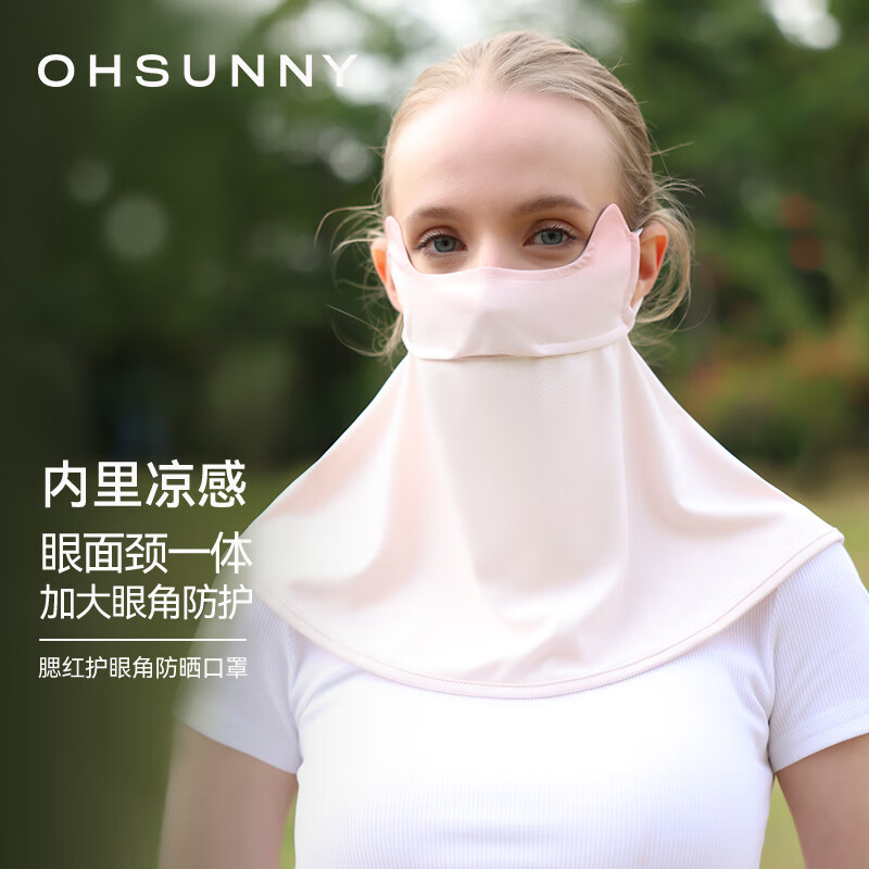 OhSunny防晒面罩女防尘防紫外线护眼角男护颈透气口罩 SLF3M172E 云朵粉