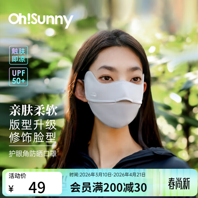 OhSunny防晒口罩女透气防紫外线护眼角遮阳户外开口防晒面罩 云霜灰 均码