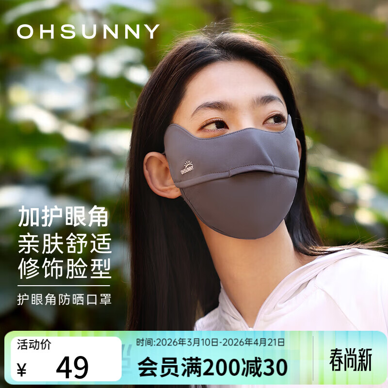 OhSunny防晒口罩女透气防紫外线护眼角遮阳户外开口防晒面罩 素影灰 均码
