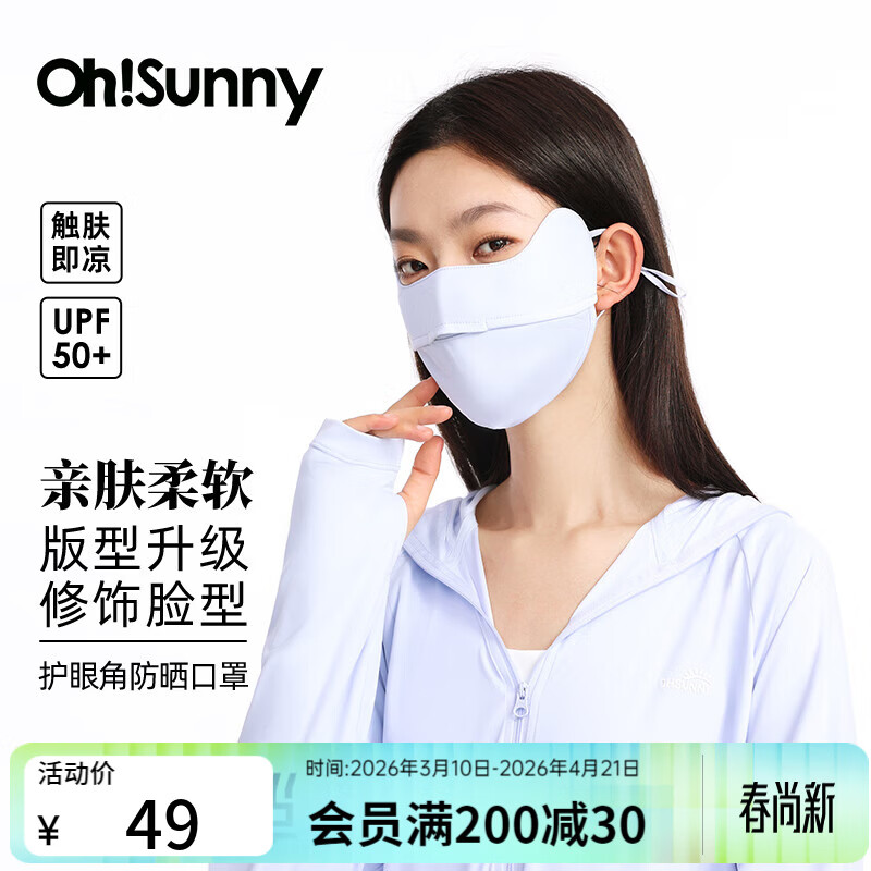 OhSunny防晒口罩女透气防紫外线护眼角遮阳户外开口防晒面罩 薄雾蓝 均码