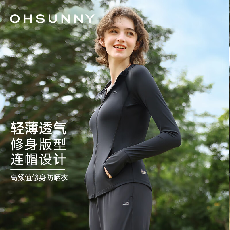OhSunny防晒衣女修身防紫外线原纱凉感连帽防晒服 SLC5M200T 暗夜黑 S