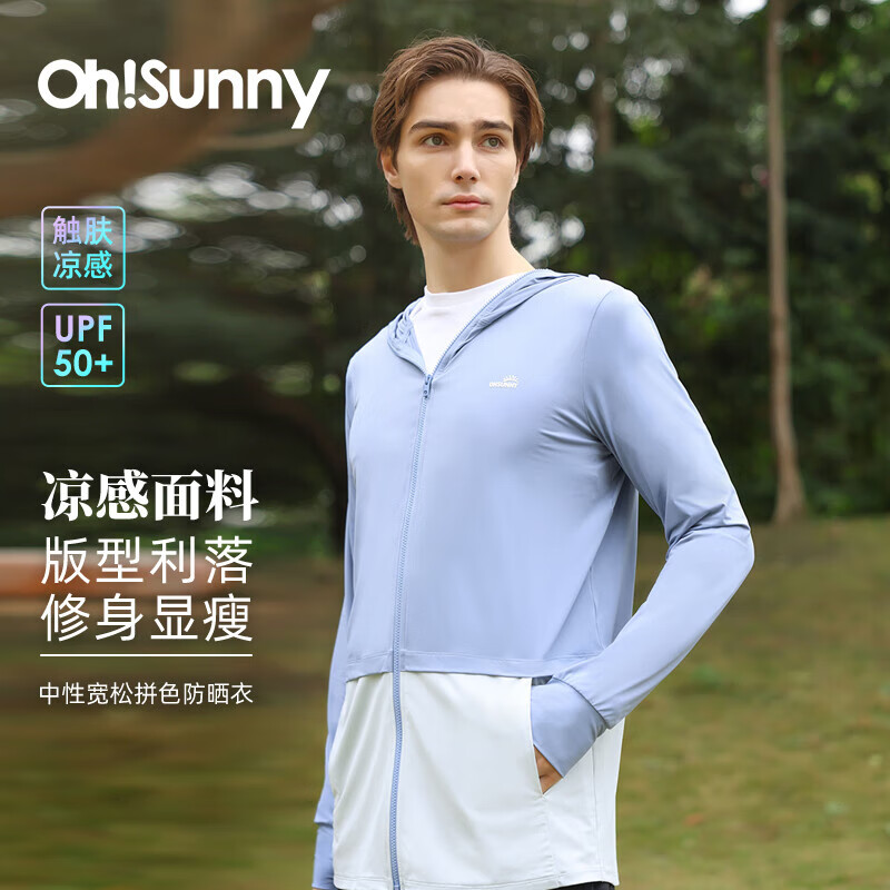OhSunny防晒服女春夏宽松大帽檐情侣防晒衣 SNC5M090T 石洗蓝/浅芍蓝 M