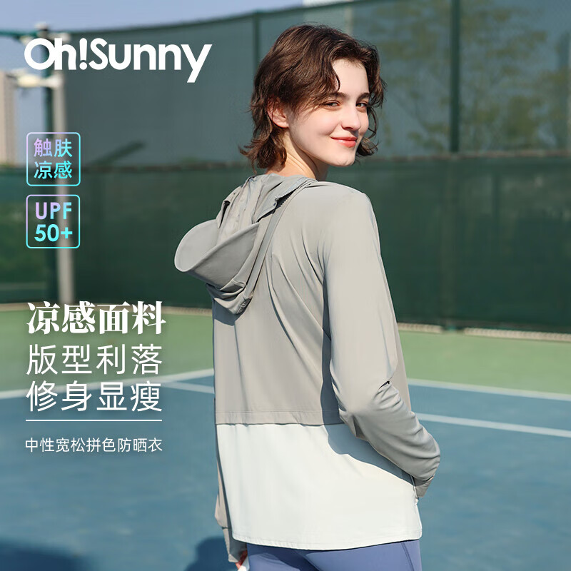 OhSunny防晒衣女修身防紫外线原纱凉感连帽防晒服 SLC5M200T 冷烟灰 M