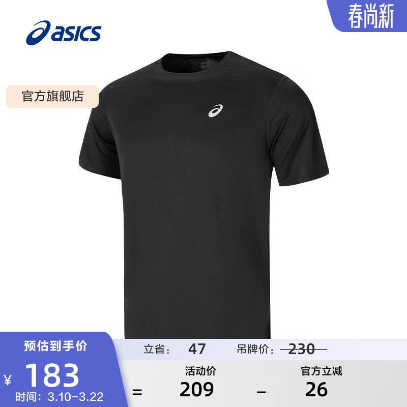 亚瑟士ASICS运动T恤男子跑步短袖透气舒适运动上衣 2011D242-001 黑色 L